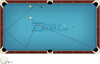 I was nice to get a couple really nice shots on tape though. This one which I have never tried before. I didn’t feel confident going the other ways to get on the 9 and this idea just came to me when I was looking at it. I’m actually quite surprised I got it all the way around, but was very happy to watch my plan unfold. I’m not 100% on the exact positions shown here, but this is the general idea. My draw stroke is pretty strong and because the balls were so close I didn’t have to worry too much about deflections on the cue causing a problem.